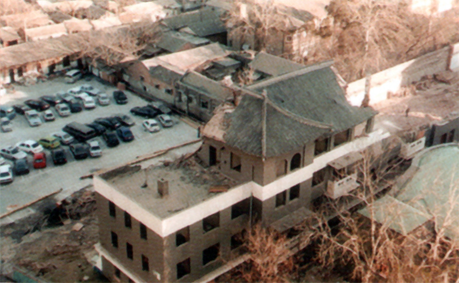 俯瞰尚未拆除的三、四号楼(有红色线框的建筑),出自1999年长安街影像图