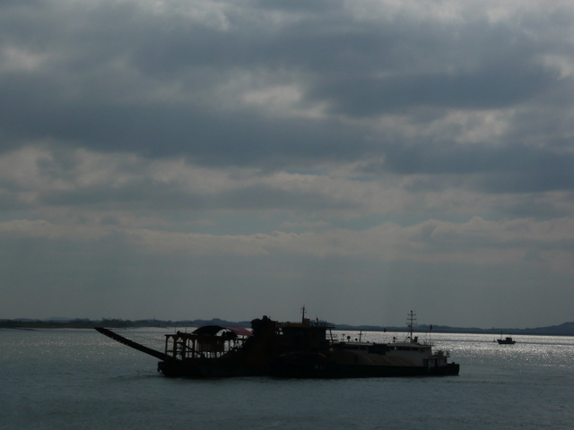 江心的采砂船