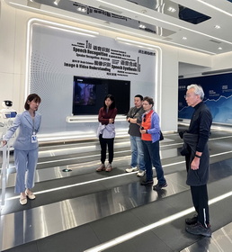 在教育领域,“科大讯飞”将因材施教的理念运用于全国城乡的学校,其智慧教育平台服务全国亿万师生;在信息通讯领域,“科大讯飞”与中移动共建人类首个无障碍通讯平台,在5G网络基础上,不依赖特定手机,不需要下载任何APP,即可与全世界进行无障碍视频通话;在医疗领域,“科大讯飞”发明的国家医师资格测试的机器人医智助理考分超过了93.6%的人类考生,为基层医生提供辅助治疗,有助于提升医生,尤其是基层医生的诊疗水平,用人工智能服务健康中国;在城市发展领域,“科大讯飞”的智慧城市平台,覆盖全国三十多个省的三百多个城市,为城市运营、公共服务城市基建、法治改革和产业发展提供系统性大数据的创新加速度。“科大讯飞”人工智能平台的应用,极大的提高了生产力,降低了人工使用的成本,使国家间和民族间不同语言的交流和传播实现了无障碍;医疗教育的受益范围更广阔;城市管理更有效、更科学。我们在“科大讯飞”的展示厅里,还参与了英语能力测试的游戏,很有意思。