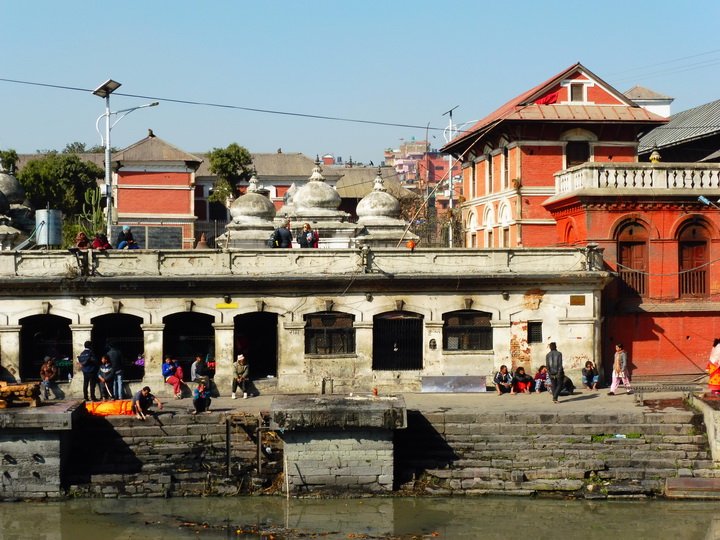 在到达此炉膛区之前,导游就反复讲,参观此神庙区要有心理准备,味道可能会让人不舒服。置身于神庙区内,当我们看到河边的印度教徒们将故去的亲属用布包裹后,为其剪发和洗脚(用河里的水),然后将尸体放在河边高大的石墩上焚烧时,我们才明白导游所说的味道之意。