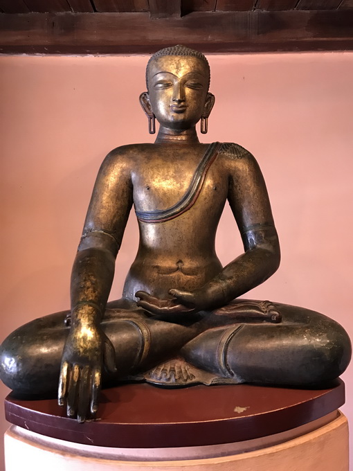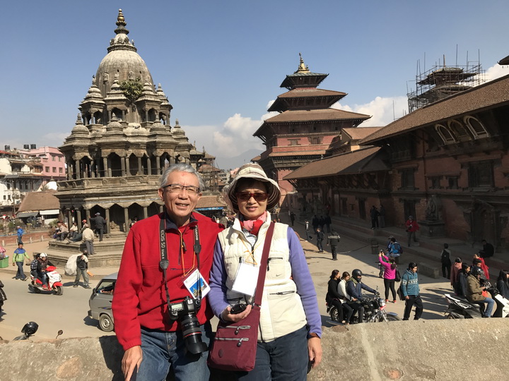 遗憾的是,由于2015年8级地震的严重破坏,我们看到很多寺庙都是脚手架矗立,处于修复和建设过程中。然而,我们还有意外的收获。本来导游仅给了我们二十分钟的时间在广场拍照,但是我和赵建平不经意地发现了王宫博物馆,且博物馆的门票是含在我们已买的票价中的。博物馆门卫主动地带我们去找导游,并解释情况。博物馆曾经是王宫的一部分。因此,我们不仅从博物馆无数珍藏的展品上了解印度教和佛教的宗教艺术和文化,欣赏17世纪至19世纪王宫收藏和民间收藏的佛像木雕、铜雕和金雕,而且也部分参观了曾经的王宫。王宫博物馆的规模、收藏的珍品数量,文字的介绍,都令我们惊喜和大开眼界。从大到印度教不同的神、小到印度神和佛不同的手势和姿势的寓意,文字解释都非常详细,是我们看到的最好的博物馆之一。但因时间较紧,我们只能匆匆拍照,不可能细细参观。但40分钟已经让我们大饱眼福了。