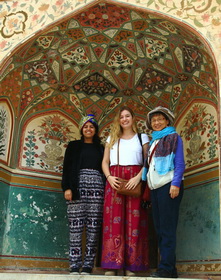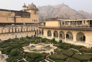 在斋普尔,我们参观了山顶王宫城堡——琥珀宫、城市宫殿、风宫和简塔曼塔天文台。因琥珀宫建在山上,在印度语中amber 意为山高处,因此被称为琥珀宫(与英文的琥珀同字,但与琥珀没有任何关系)。