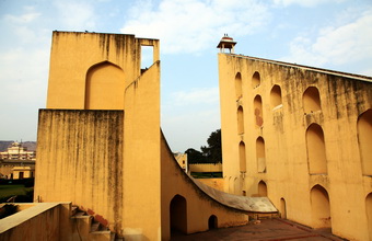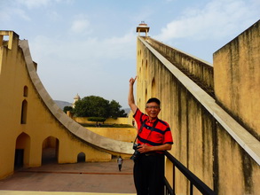 在斋普尔,我们参观了印度世界文化遗产之一的简塔曼塔天文台。由20多个固定砖石建筑构成观测设备的天文台,是当时斋普尔的土邦王子辛格于1728年开始修建的。辛格对天文的兴趣极大,共建造了5座砖石天文台,斋普尔的这座是最大的,而且是目前保存最完好、最重要的古天文台。