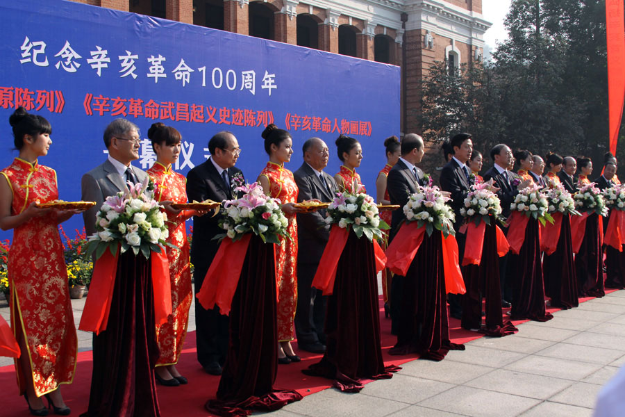 黄绍强、黄与群与海峡两岸辛亥革命后裔在黄兴塑像前合影